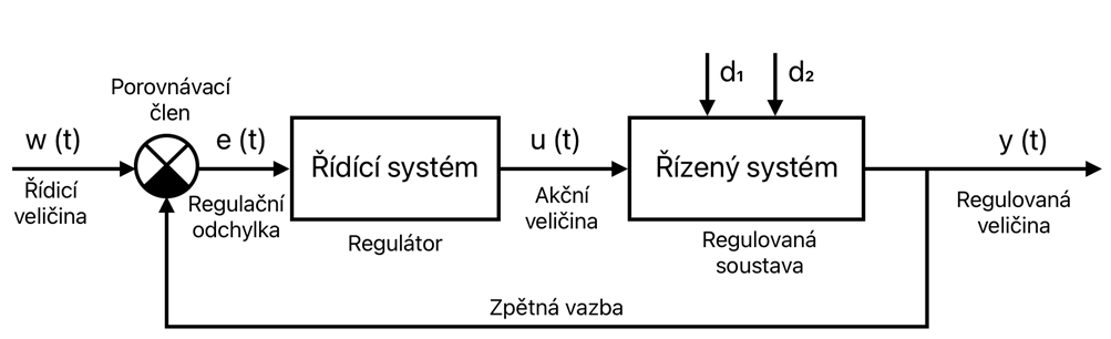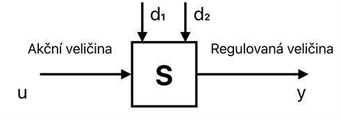 • [u] – Akční veličina – Výstupní veličina z regulátoru a současně vstupní veličina do regulované soustavy.